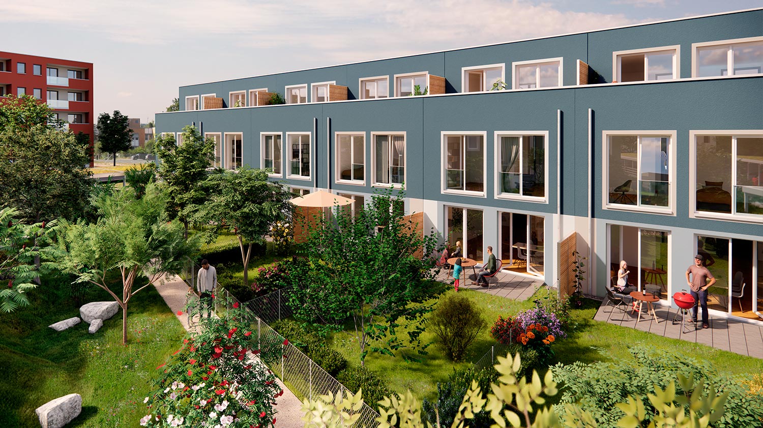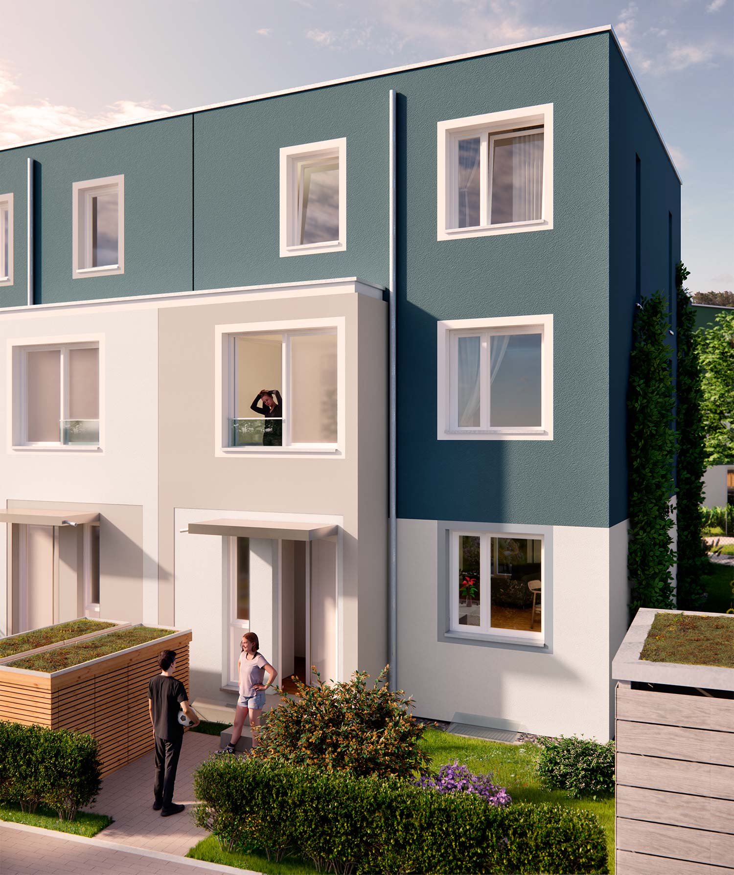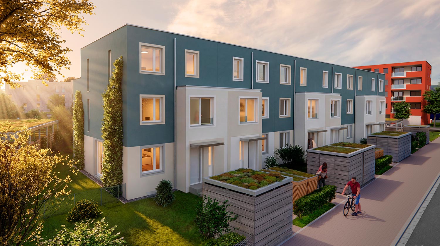 - Aufwändiges Begrünungskonzept zwischen den Häuserreihen