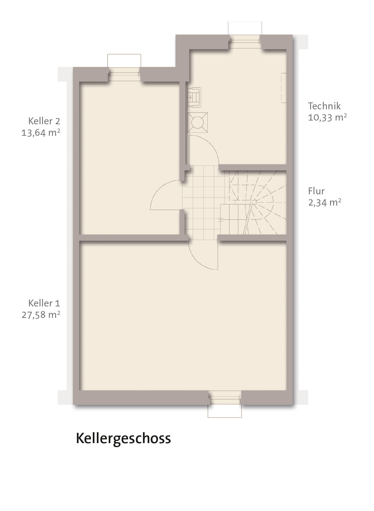 Das Haus ist als voll unterkellertes Massivhaus mit Vollwärmeschutz als Effizienzhaus 55 konstruiert.