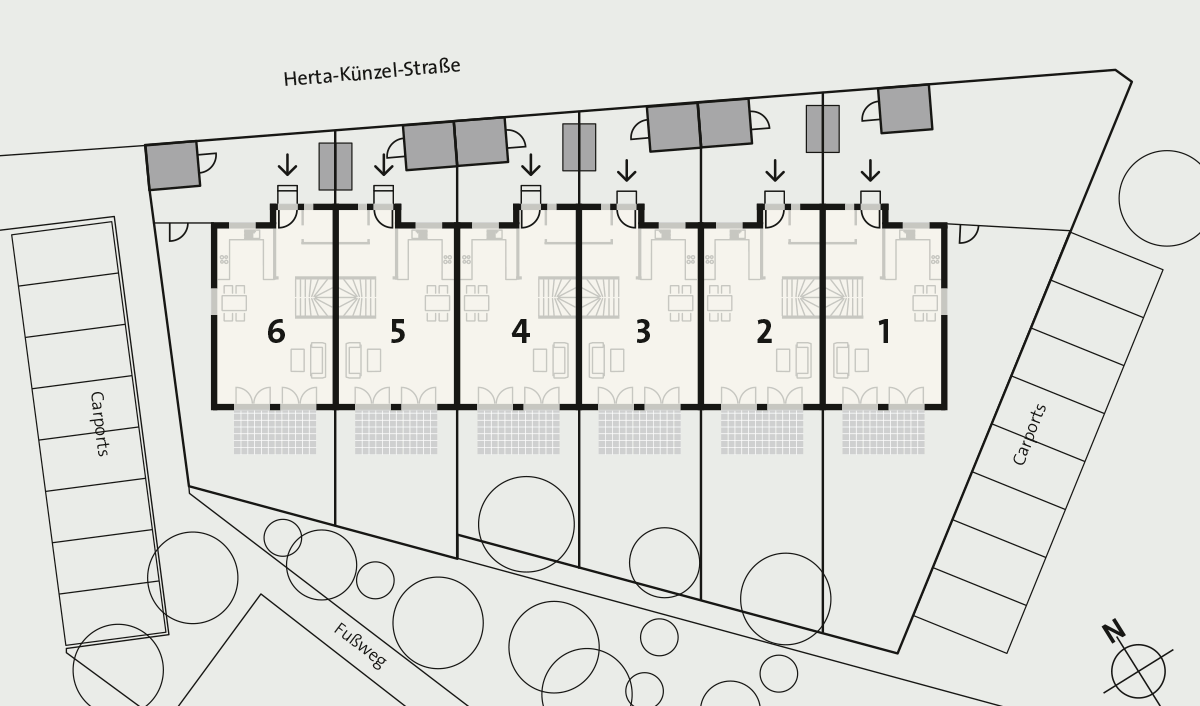 Sechs Reihenhäuser in der Herta-Künzel-Straße